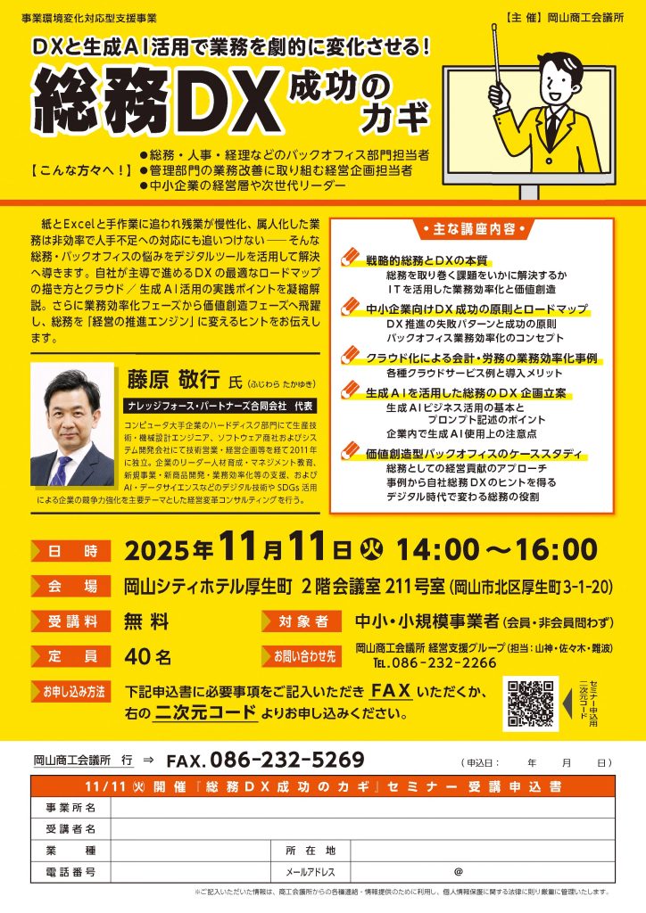貝塚商工会議所の主催による総務のDX(デジタルトランスフォーメーション)をテーマにしたセミナーに、弊社代表が登壇いたします。